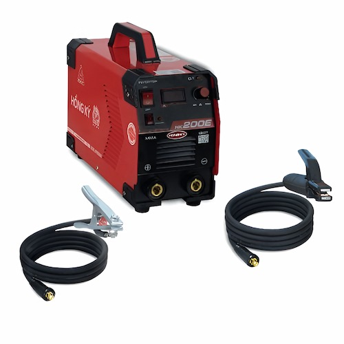 Phụ kiện máy hàn Hồng Ký 200E bao gồm: kìm hàn + 3m dây hàn và kẹp mass + 2m dây mass.