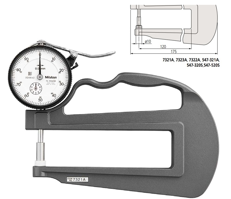 Mitutoyo 7321A có thiết kế dạng cơ truyền thống, cấu trúc chắc chắn và thao tác trực quan. Đây là dòng đồng hồ đo độ dày dạng cơ có nhiều ưu điểm về thiết kế bền chắc, tuổi thọ cao.